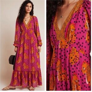 Farm Rio Cheetah Pink Banana Maxi Dress