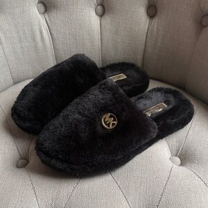 Michael Kors Black Plush Slippers