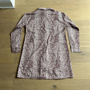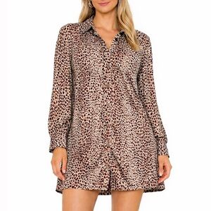 Cheetah Print Button Down Mini Shirt Dress Collared Long Sleeve Brown Small
