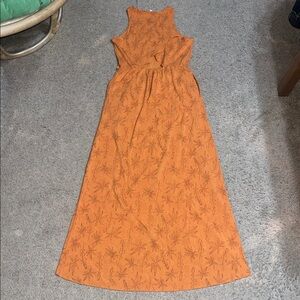 Toad & Co Sunkissed Sleeveless Maxi Dress Floral Faux Wrap Apricot Orange XS. They maxed out what's possible in one dress by mixing quick dry fabric with UPF 40+ protection and on-seam hand pockets so you're dressed for whatever the day brings. The high neckline and fitted tank bodice meet at the natural waistline to flow to a cut-away skirt. Every bit as flattering as functional. Fit: A-line silhouette, crew neck, bra-friendly straps, cutaway skirt. Feel: Lightweight recycled polyester with stretch for easy movement and perfect drape. Features: water-friendly, cutout open back detail, hidden secure zipper pocket on wearer's right. Approx measurements: 16.25“ pit to pit, 13“ waist, & 52.5“ length. Great pre-owned condition. No stains/flaws. Smoke/pet free home. Offers welcome. Bundle & save. Ship same/next day. Packaged w/ care.