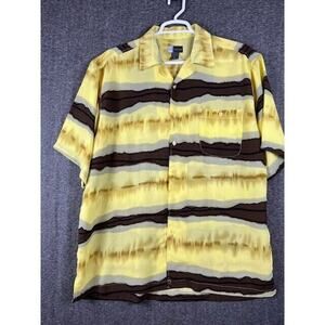 GB Black Label Hawaiian Shirt Mens Large Yellow Brown Striped Adult Men
