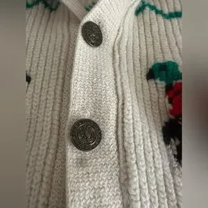 Vintage knitted cardigan with minor holes, overall, still in good condition. Says Large but accidentally thrown in washer so now a small.