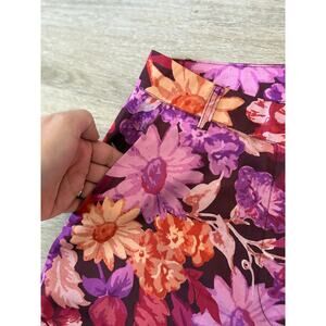 Giving a tropical vacation vibe these relaxed pants feature a flowy satin polyester fabric, high waist, zipper and button closure, side pockets, and back welt pockets