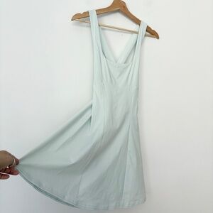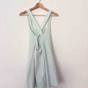 Lightweight sky blue tennis dress with cross back and built-in shorts