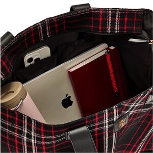NWT Victoria's Secret 2025 Holiday Plaid Tote Bag with Black Handles