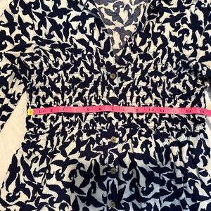 Maeve Navy Blue and White Bird Patterned Blouse Sz Small