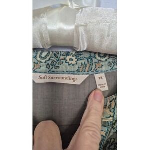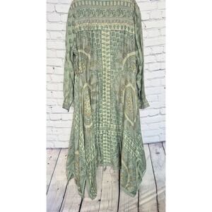 Soft Surroundings Western Boho Paisley Maxi Dress Green 2XL Handkerchief Hem