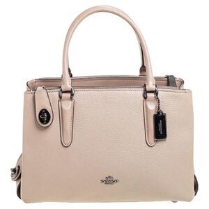 This beautiful Brooklyn Carryall satchel from Coach is highly functional while being charming and stylish. Crafted from beige-hued leather, the satchel bag features dual handles and gunmetal-tone hardware. The fabric & leather-lined interior comes with zipped compartments.