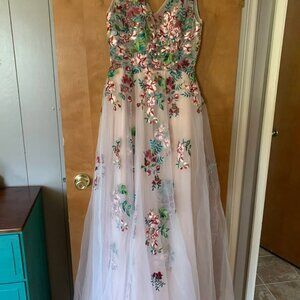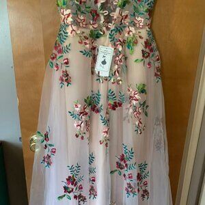 New Floral Embroidered Wedding Dress – Size 6 – Blush Tulle – Never Worn