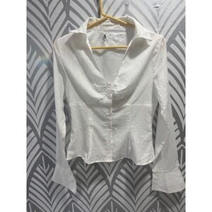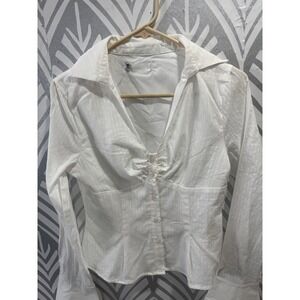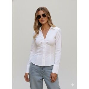 Princess Polly White Elowenn Ruched Bust Button Down Long Sleeve Top US 8