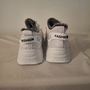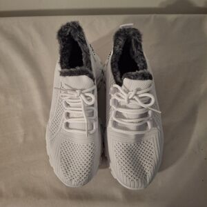 Step into comfort and style with these women's white sneakers featuring a cozy faux fur lining. Perfect for casual outings. size 7.5. Brand new. never worn.