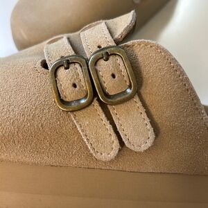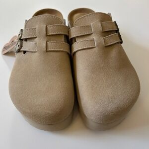 NWT Project Cloud Womens 7.5 Tan Suede Platform Clogs Double Buckle Mules