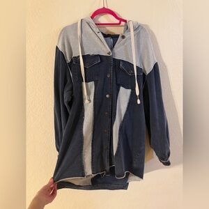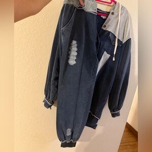 POL Set Two-Tone Denim Hoodie Jacket and Joggers