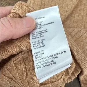 54% cotton, 35% rayon, 10% nylon, 1% spandex Hand wash cold