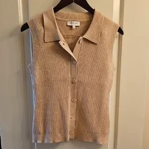 NWOT Gilli Tan Ribbed Button-Down Sweater Vest, L | Academia, Preppy, Knit Vest