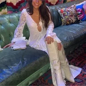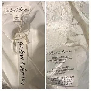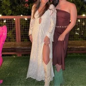 The most gorgeous white lace gown from For Love & Lemons— the Frances lace maxi. Only worn once on my bachelorette party and in excellent condition. It’s the perfect balance of feminine, flattering and bohemian chic. Stevie Knicks vibes in the most beautiful way! It’s all about the details: the deep plunge neckline with a connecting metal ring, long bell sleeves, thigh-high slit, low open back… it’s breathtaking. I also loved that the sleeves were slightly puffed on the shoulder to give it “princess” flare.