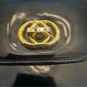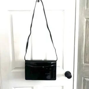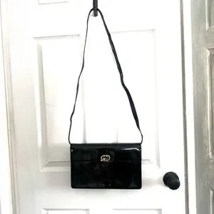 Vintage 1970s Gucci Black Patent Leather Clutch/ Adjustable Strap Bag