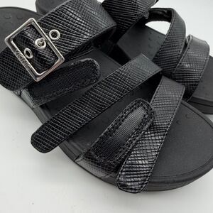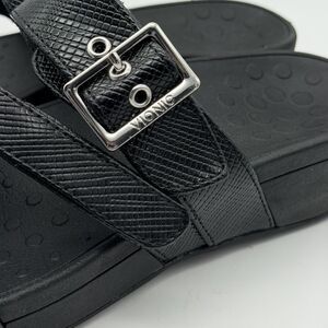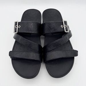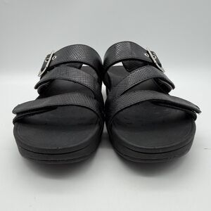 Vionic Pacific Rio Orthotic Black Lizard Wedge Platform Slip On Sandals Women 8