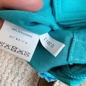 CAPPELLI STRAWORLD Turquoise Crochet Toyo Straw Wooden Grip Satchel Tote Handbag