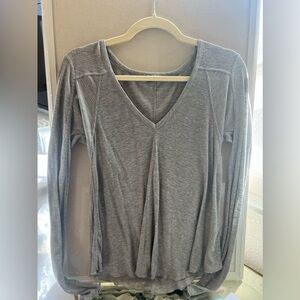 Free People Intimately rock the boat tee Grey Long Sleeve V neck Knit Top