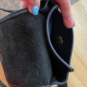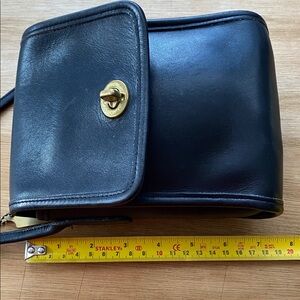 The Vintage Coach Black Leather Scooter Bag 9893 is a stylish and classic crossbody bag designed by the renowned brand Coach. Made of high-quality leather in a sleek black exterior color, this one-size bag is versatile for both men and women. The unique vintage design and durable material make it a timeless accessory that is perfect for everyday use or special occasions. Size Height 7”, Width 5”, Depth 1.5”, Strap Drop 23”.