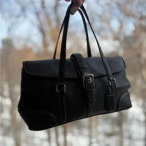 Elevate your collection with this classic Coach Hamptons Leather Flap Satchel, handcrafted in 2004. This timeless piece showcases Coach’s renowned craftsmanship, made from high-quality natural full-grain cowhide leather in a rich black, finished with elegant contrast white top-stitching.