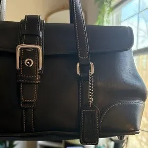 Vintage Coach Hamptons Black Leather Flap Satchel | 9267 | Hangtag | LIKE-NEW