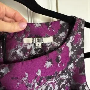 EUC (worn once) fit purple, black and silver fit and flare dress by BB Dakota. Fun dress with a fuller pleated skirt. Size 2, measurements shown in photos. Zipper and hook and eye closure in back. No flaws, comes from a smoke-free home.