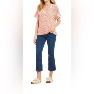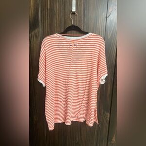 Small- WE THE FREE Linen-blend Coral Striped Oversized Raw Trim T-Shirt