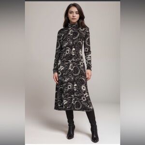 JOHNNY WAS JANIE FAVORITE SEAMED MOCK NECK DRESS MINA SMALL Sun moon star NWT 99
