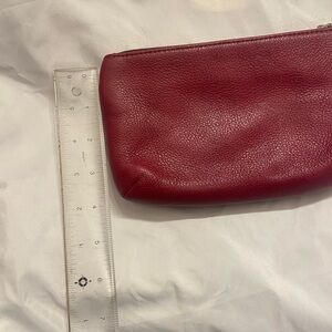 Elegant red leather wristlet. Features detachable strap. Perfect for any occasion.