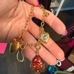 Chic gold bracelet adorned with heart and crystal charms. A stylish accessory for any occasion.