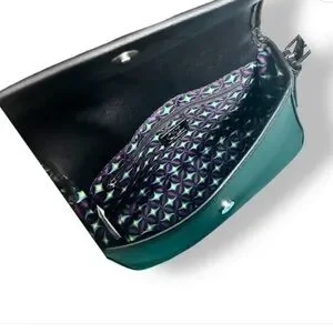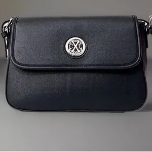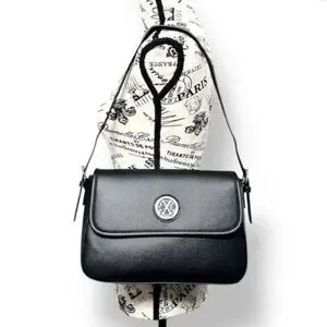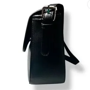 Material: Shell: 100% Vegan Leather - PVC, Lining: 100% PolyesterAccents: Caviar Texture, Logo Medallion, Structured Silhouette, Magnetic Flap, Adjustable StrapFeatures:* Structured silhouette with chic minimalist design* Caviar-textured vegan leather for a refined look* Polished metal logo medallion on flap* Adjustable shoulder strap for comfortable wear* Magnetic snap closure for easy access* Fully lined interior with slip pocket*
