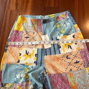 New NWT Cider Patchwork Pants Multicolor Lightweight Straight Leg Side Zip Sz M