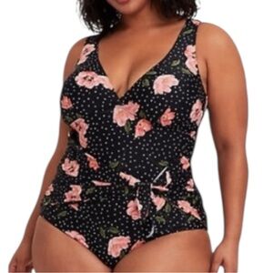 Torrid Floral & Polka Dot Tie Front Wireless One Piece Swimsuit Size 3X