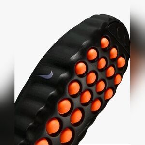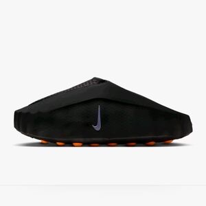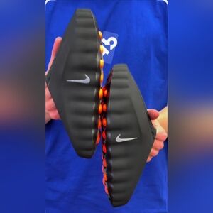 Nike slide sandals in black with orange accents. Comfortable and stylish.