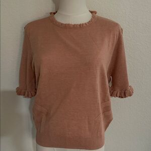 Paige Triste Metallic Ruffle Trim Top in Peach Metallic, Size XL, NWT