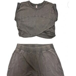 FP Movement Hot Shot Logo Crossover Large 2 Piece Set Gray Dark Shadow NEW $98