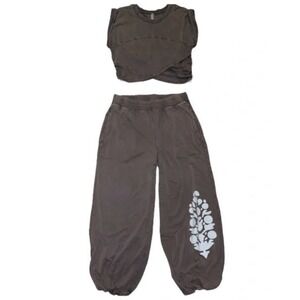 New with tags Free People Movement Hot Shot Logo Crossover size Large 2 Piece Set in Gray Dark Shadow is a stylish and comfortable activewear set perfect for gym and training sessions or casual day out in the spring season. Made from cotton knit fabric, this set includes a pullover top with short sleeves and a solid pattern, along with matching sweatpants. The set is designed for women in a size Medium and features a regular fit. With the iconic Free People brand, this tracksuit is a fashionable and functional addition to any workout wardrobe.Retail $98