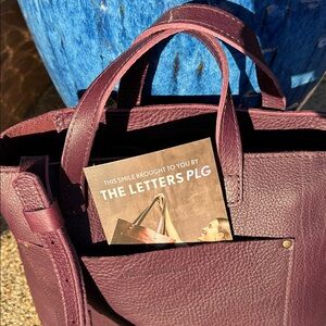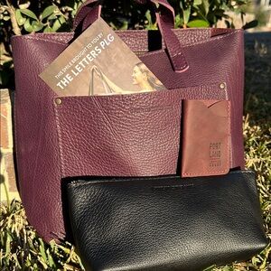 Hello, this is a beautiful unicorn π¦ mystery Crossbody tote in the size medium, and in the color plum.!!! this is not found on the Portland Leather Goods website for sale as she is a unicorn π¦. She is a zipper closure with the most gorgeous pebbles, and she will come with a black pebble, utility bag and a card holder in the color Merlot. All of these items are brand new., if you love purple or a dark plum, you will love this bag! I can wrap everything up in the Portland Leather Goods box so that you can feel like you purchased it straight from the store. ! Thanks so much for looking!