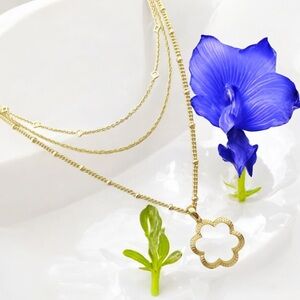 Get the layered look in one step with the Susie Convertible Multi Strand Necklace in Gold. Designed with three textured chains and an open-frame floral pendant, it’s a necessary addition to your growing collection. Plus, it can be worn multiple ways!