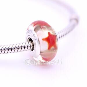 Authentic PANDORA Retired Cinnamon Stars Glass Murano Bead