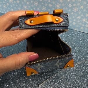 Cute stylish denim bag charm. Approximately 4"x3"x2". No name brand. Great condition! Never used! Just cleaning out my closet!
