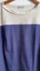 Details: Rosso35 minimalist navy and cream color block t-shirt dress with short cuffed sleeves and side seam pockets. Made in Italy. Timeless and elegant garment for everyday, a great staple piece with a bit of personality.