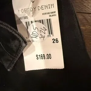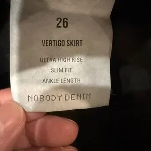 🖤 Edgy meets elevated in this NWT Nobody Denim Vertigo Skirt in Dejavu. Crafted from premium black cotton denim, it features an ultra high-rise fit, and frayed hem for that perfect street-chic edge. The self-tie denim belt adds a tailored touch, while the slim fit flatters every curve.
