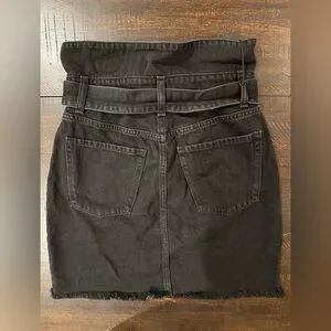 NWT Nobody Denim Black High Rise Denim Mini Skirt Belted Frayed Hem 26