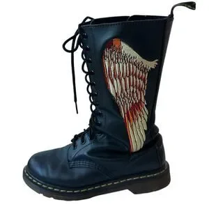 Dr. Martens Celeste Combat Boots Black Leather Angel Wings Women's Size 8