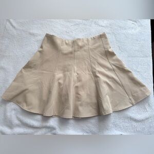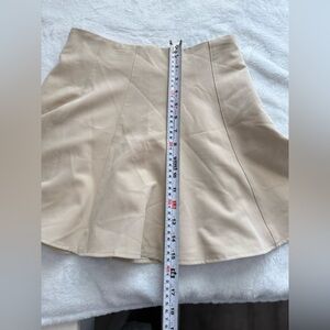 Chic beige flare mini skirt with built-in shorts underneath (skort style) for comfort and coverage. Features a flattering A-line silhouette with structured paneling that gives it a polished yet modern look.