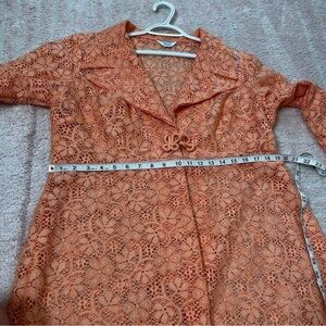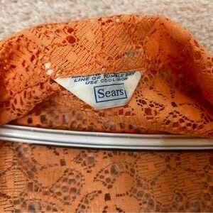 Vintage 60's Sears Sherbet Peach Orange Lace Peignoir Duster Jacket SZ Large/XL