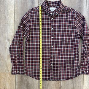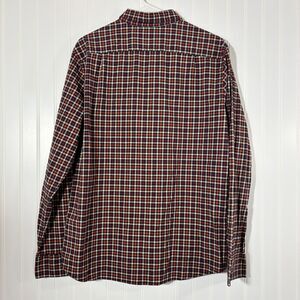 Goodfellow Plaid Poplin Button Up Shirt Mens Large Slim Red Blue Business Casual